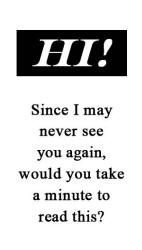 Hi! - The back side of this card offers a short testimony and the plan of salvation.
