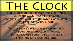 The Clock - Time's running out. The back of this card has a few scriptures that lead to salvation.